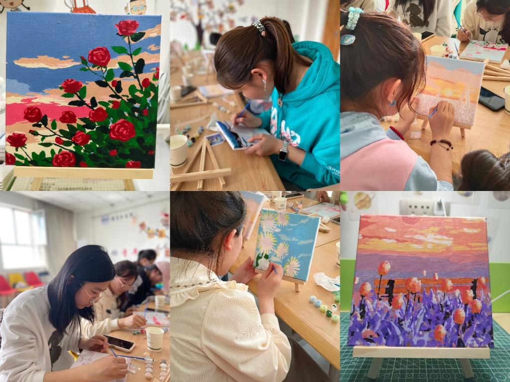 活动现场,同学们在夏慧铃老师带领下,远离外界的喧嚣与打扰,积极投入到DIY数字油画中,让自己静下来,拥抱生活,享受宁静,体会颜色渐变的层次感、积少成多的满足感,创造出了一件件色彩鲜艳、形象生动、富有创意的作品。