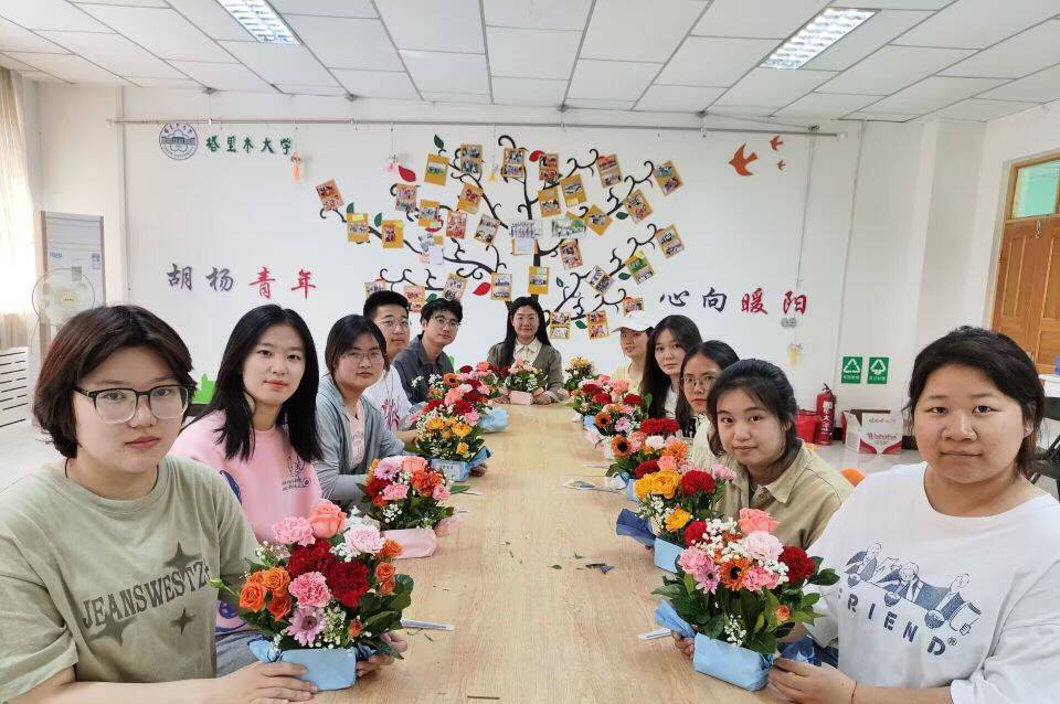 4月20日下午,由心理健康教育咨询中心举办,何荣老师带领的第五期“胡杨漫时光” DIY 手工团辅“修剪之间全盘选择——鲜花插花”活动,在大学生活动中心403顺利开展。