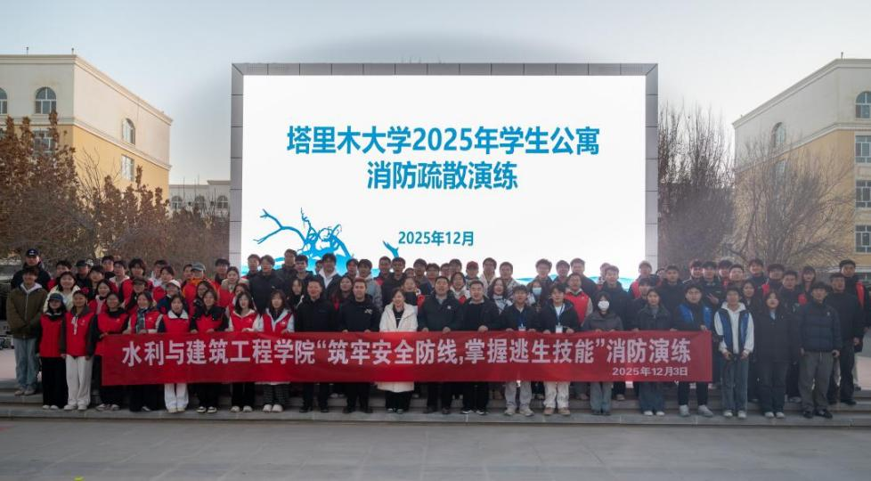12月3日下午,党委学生工作部联合党委保卫部、水利与建筑工程学院在西区大舞台开展塔里木大学2025年学生公寓消防疏散演练。党委常委、副校长居来提·司马义,党委常委、副校长张宏荣,党委学生工作部、党委保卫部、各学院党委副书记、住楼辅导员、全体宿管员及水利与建筑工程学院600余名师生共同参与。